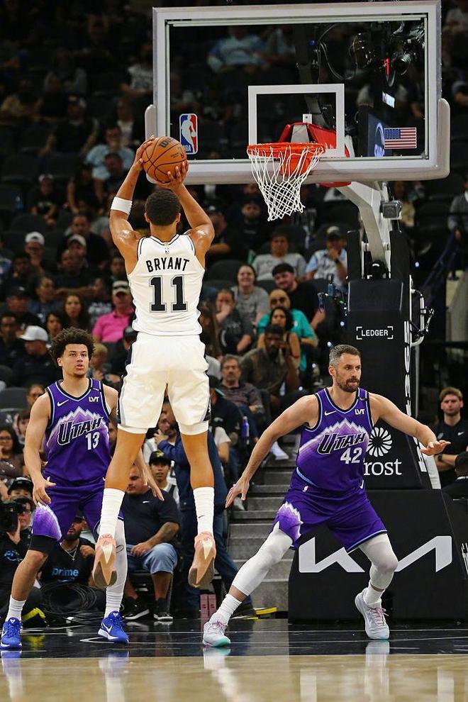 北京时间10月11日,NBA季前赛继续展开,马刺主场对阵爵士。本场比赛两队上来陷入拉锯战,分差一直没有拉开,可在第二节后半段马刺逐渐占据场上主动,内外开花将分差拉开,半场领先17分;到了下半场文班亚马休息,爵士则展开反扑成功将分差追上并拖入加时赛。加时赛马刺没有错失机会,以134-130击败爵士。